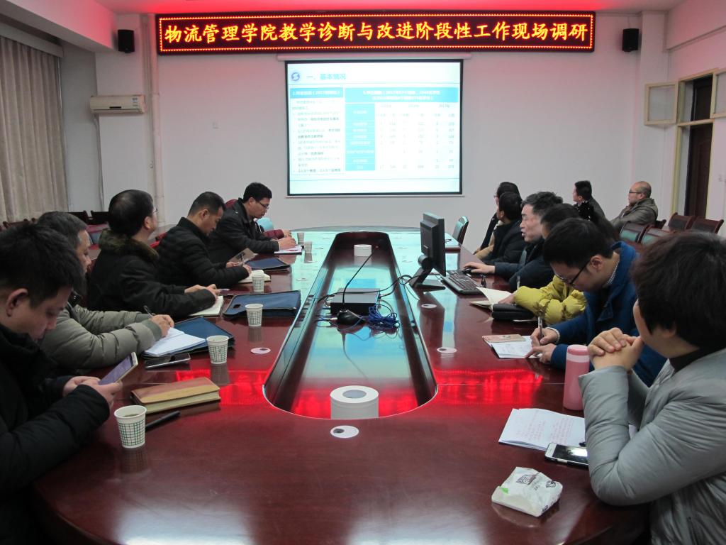 1月25日下午6:00—7:00,学院相关领导与诊改工作组成员,组织部部长贺天柱、质量办主任南欢、教务处处长段峻等一行6人来到物流管理学院,对公司教学诊断与改进阶段性工作进行现场调研。物流管理学院领导、教研室主任、专业带头人参加了会议。物流管理学院经理李选芒教授主持会议。