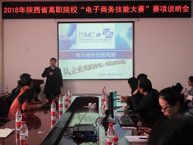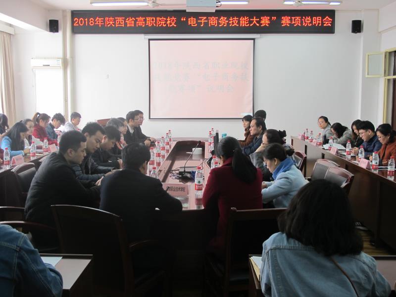 花香满园,春意盎然,3月9日,物流管理学院成功举行2018年陕西省职业院校技能竞赛“电子商务技能赛项”说明会。来自全省23所兄弟院校的40多名领导和老师参加了此次会议。物流管理学院经理李选芒、电子商务教研室全体教师、中教畅享(北京)科技有限公司技术总监张强林等参加了本次会议。会议由物流管理学院副经理王永莲教授主持。