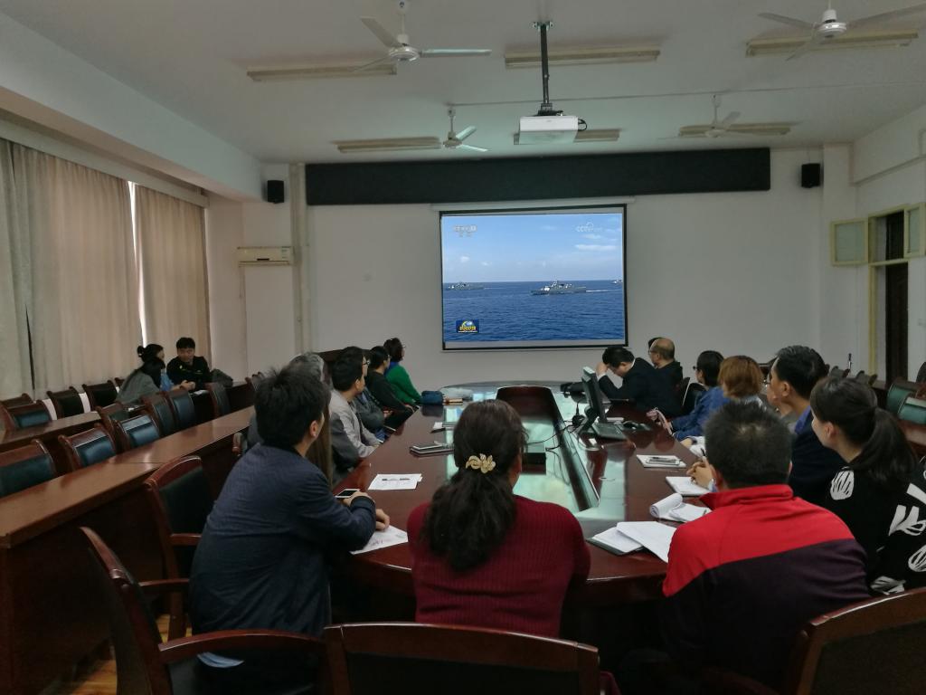 为深入开展2018年“两学一做”学习教育常态化制度化,进一步增强教师党员的爱国热情,4月25日下午,物流管理公司党总支组织全体教师党员观看了中央军委在南海海域隆重举行的海上阅兵。