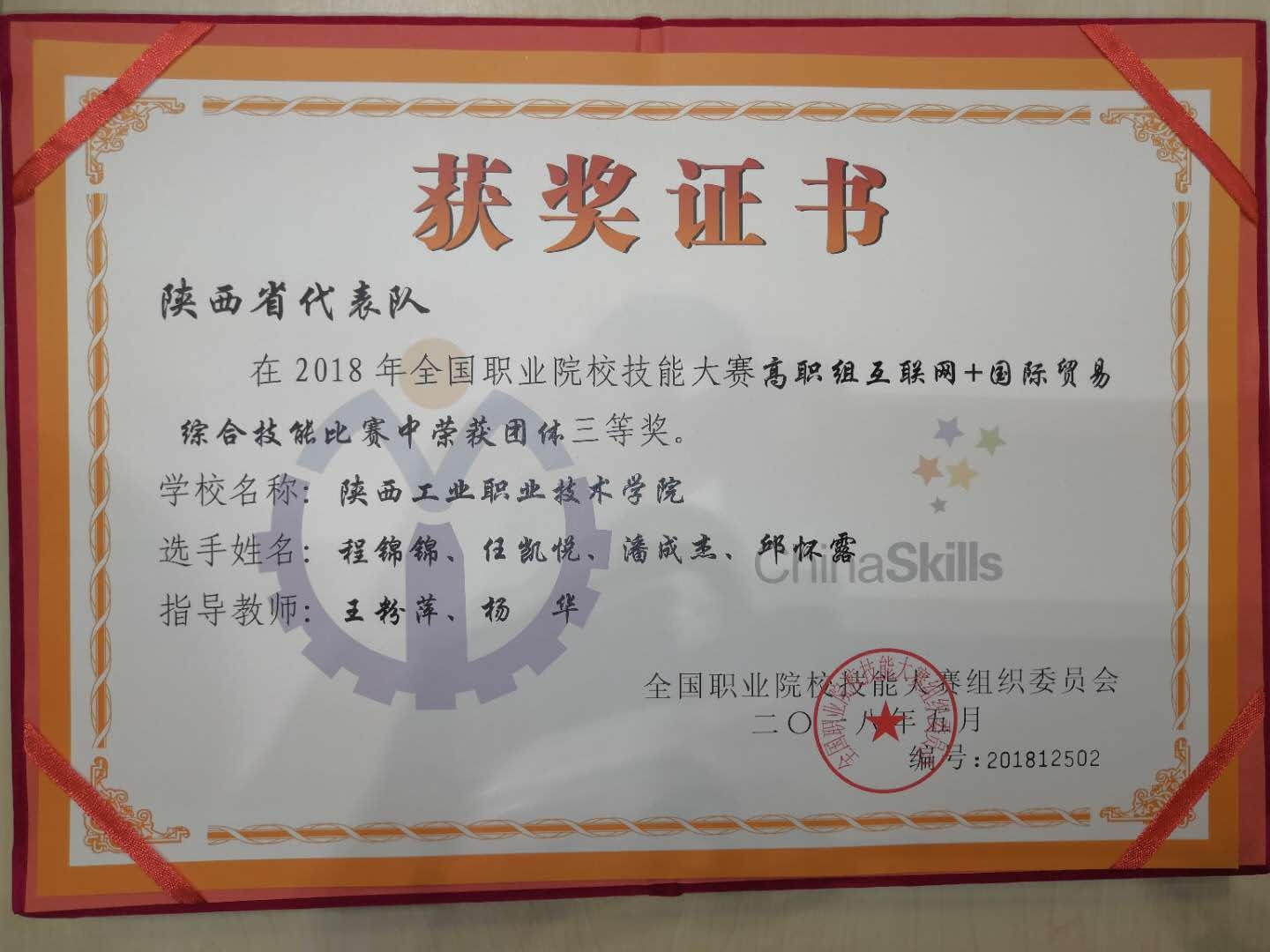 5月27日,2018年全国职业院校技能大赛“互联网+国际贸易综合技能”赛项(高职组)在无锡商业职业技术学院落下帷幕。经过两天的激烈角逐,最终由公司物流管理学院王粉萍、杨华老师指导,市场营销1602班潘成杰、任凯悦、商务英语1601班程锦锦、商务英语1602班邱怀露4名同学组成的代表队斩获团体三等奖。