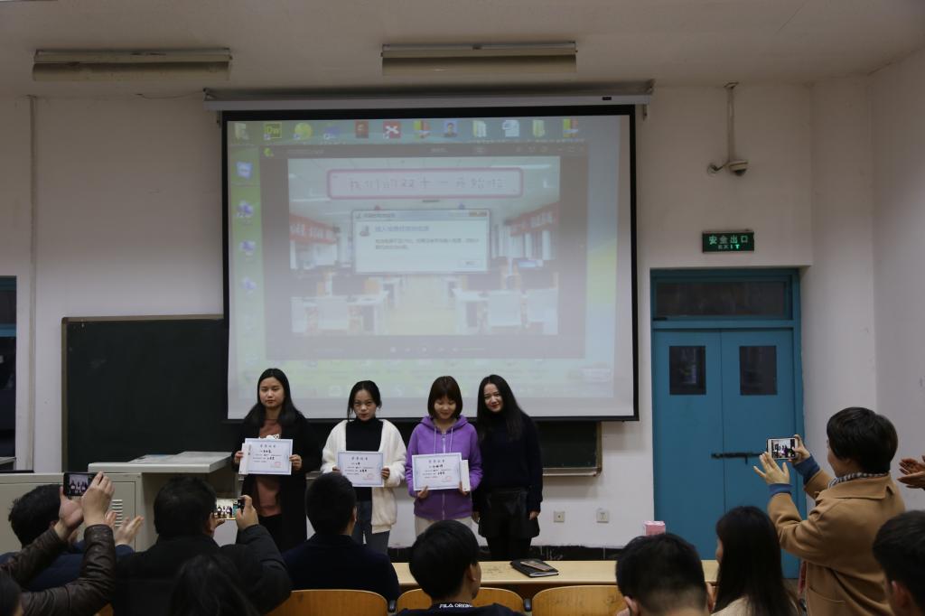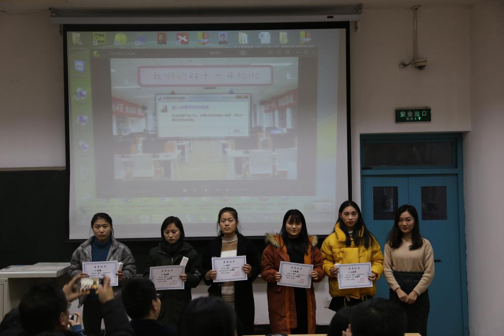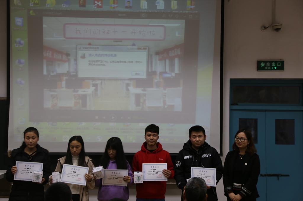 本次大会由视频回顾、嘉宾讲话和颁奖三个环节构成。首先进行的视频回顾环节,全体与会人员通过视频中的每个镜头回顾了2018年“双十一”期间2017级物流管理、连锁经营管理、房地产经营与管理、航空物流等专业员工努力而认真的面孔。在嘉宾讲话环节,连锁1701班白丹同学、公司房地产教研室孙菲老师、西安思玛特房巍先生、西安聚盟科技赵衍江先生分别代表员工、老师、企业对这次实训做总结讲话,从讲话中我们能够体会到员工们的成长、老师的欣慰、合作企业发自内心的感动和称赞。最后由公司物流管理学院李选芒经理做总结讲话,李经理从流通类专业的人才培养模式角度出发,探讨了校企合作对人才培养的重要性,也对校企双方更深层次的合作提出了美好的愿景。