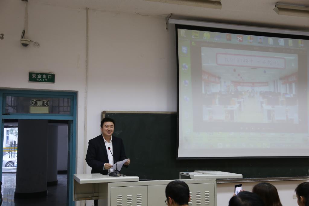 11月28日下午,物流管理学院在崇文西楼103举行“2018年双十一在线客服实训总结会”,为本次在线客服实训画上圆满的句号。西安聚盟科技发展有限公司高级运营经理赵衍江先生、人力资源部经理侯婷女士、项目经理李洋女士、项目组长孟祥亮先生、项目组长赵潇女士,西安思玛特电子商务有限公司总经理房巍先生,公司物流管理学院经理李选芒教授、副经理王永莲教授、教学办主任王红艳、学工班主任王尚宏、房地产教研室主任孙菲、物流教研室主任成志平、连锁教研室主任张庆、市场营销教研室主任颜伟、电子商务教研室主任杨涛和参加本次实训的全体员工参加了此次会议。会议由物流管理学院实训中心主任张光主持。