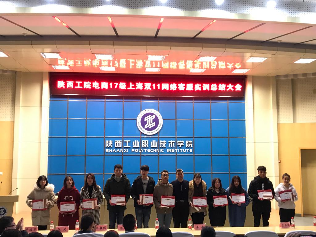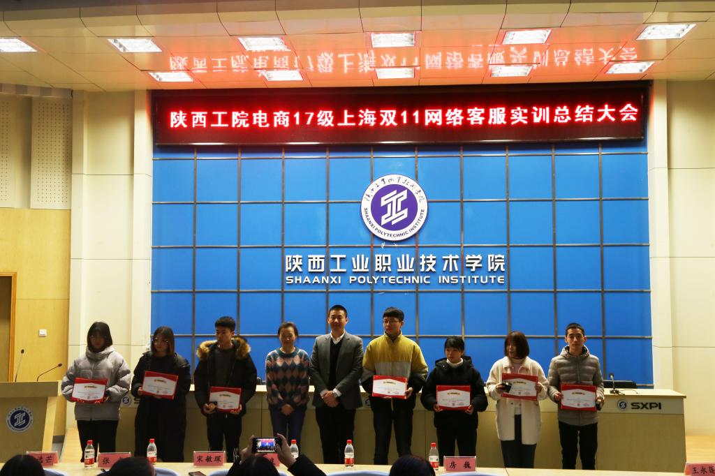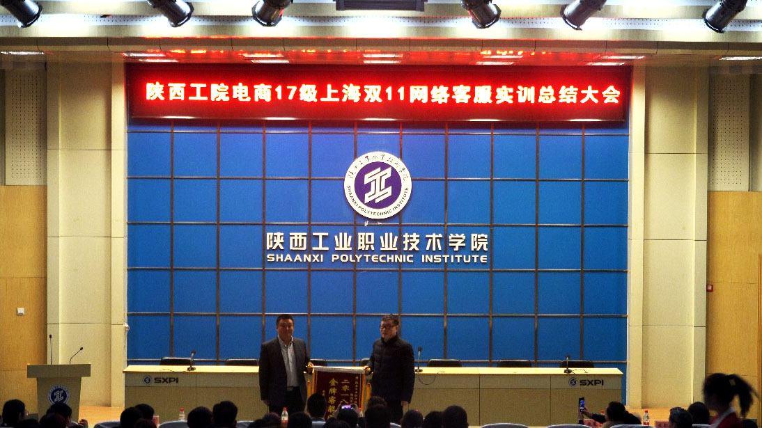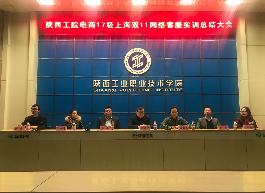 12月6日下午,物流管理学院在学术会堂举行17级电子商务专业上海“双十一”在线客服实训项目总结大会。上海凯淳实业股份有限公司人事总监宋敏琛女士、人事副总监马良先生,西安思玛特电子商务有限公司总经理房巍先生,物流管理学院经理李选芒教授、副经理王永莲教授,教学办主任王红艳副教授、学工办主任王尚宏,以及电商教研室全体教师和电子商务专业17级303名同学参加了此次会议。会议由物流管理学院实训中心主任张光主持。
