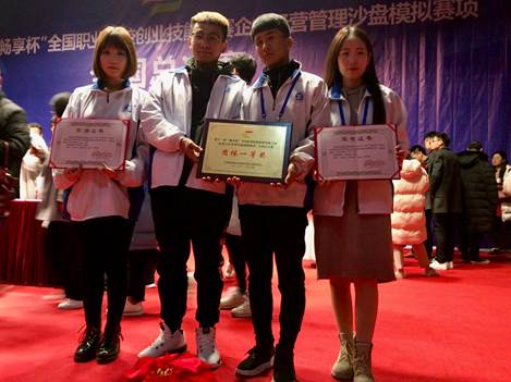 2018年12月17日,第十一届全国职业院校创业技能大赛企业经营管理沙盘模拟赛项在成都职业技术学院落下帷幕。来自全国29个省市、125所高职院校的152只代表队参加了全国总决赛。经过8个多小时的激烈比赛,由物流管理学院连锁1701班王小龙、齐婉婷;连锁1702班杨宇通、王瑞四名同学组成的参赛代表队获得团体一等奖,张庆、王红艳获得优秀指导教师称号。