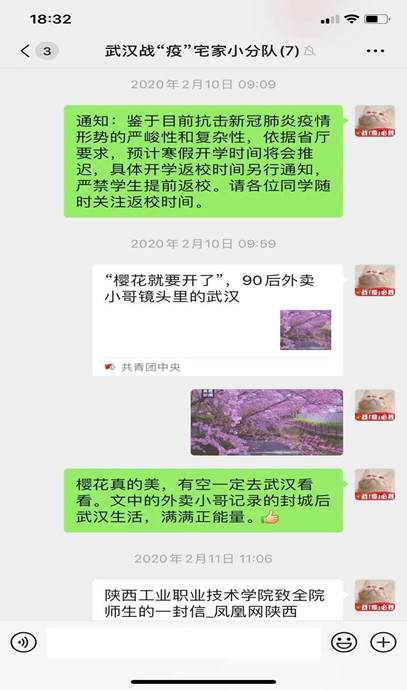 三大行动暖人心。针对员工宿舍网络信号差,无WI-FI等问题,学院给每名员工充值20G全国流量和100元话费,方便员工进行疫情上报、网络资源浏览。让员工与家人、朋友进行沟通交流,用亲情来安抚员工焦虑情绪。针对员工身处疫区食品匮乏,每日吃泡面,吃菜成困难等问题,辅导员与武汉顺丰人力资源经理沟通,及时给员工送去了卤菜、腊肉等应急食品。班主任、辅导员每日推送一则疫情防控小知识、每日一声问候、不定时聊天等方式增加员工抗击疫情信心,树立正确的疫情防控意识。组织员工开展静心阅读、居家运动、写平安信等活动,帮助员工充实“宅时光”,丰富“云生活“,帮助员工转移注意力,消除疫情带来的紧张焦虑情绪。