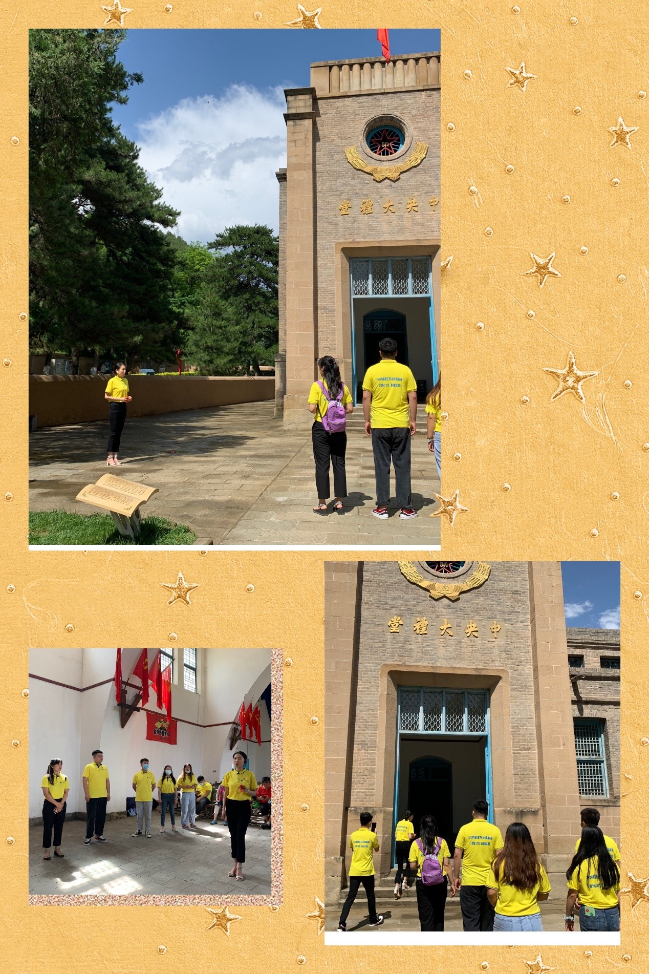 26日下午,员工第一党支部三名师生党员来到革命圣地延安七大会议旧址,通过线上直播形式带领36员工党员和教师第一、第二支部教师党员参观七大会议旧址,学习党的历史,缅怀革命先烈。首先,薛媚老师通过线上直播的形式带领支部党员参观了中共“七大”旧址,号召大家从学习党史的过程中汲取智慧和力量,继承党的优良传统。接着,现场党员和线上党员在岳攀老师带领大家重温入党誓词。虽然大部分党员身处三百多公里外的咸阳,但大家整齐洪亮的誓言在七大会场回荡。