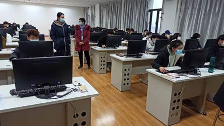 上午8:30至11:00在公司精艺楼6009物流模拟实训室开展理论和实务考试。员工进入考场前严格遵守疫情防控要求,监考老师依次核对每位考试的身份信息,确保无误。