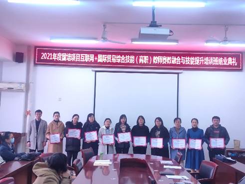 3月2日,2021年度国家级团队培训互联网+国际贸易综合技能培训班结业典礼在商贸流通学院5楼会议室举行,太阳成集团tyc122cc副经理张光,培训教师王粉萍、王霄、程天一及全体国培学员参加,结业典礼由培训班负责人杨涛主持。