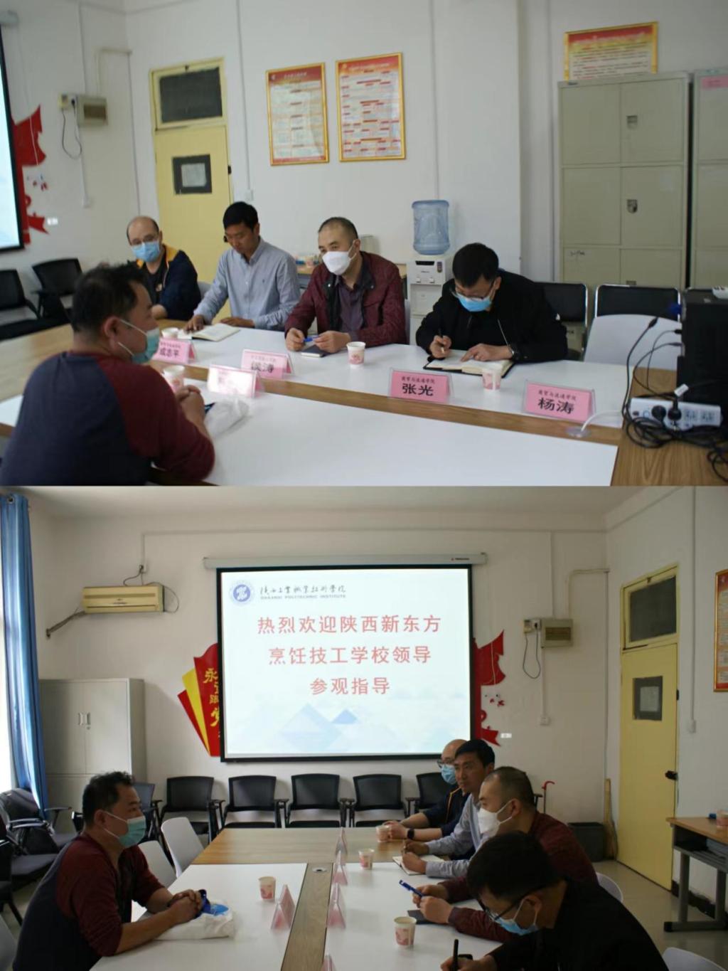 4月26日上午,西安新东方技工学校升学部负责人孙鹏来公司洽谈校企合作。公司党总支副书记侯涛,学院副经理张光、学工办主任成志平、连锁教研室主任张庆同志在崇文北楼二楼会议室与来访嘉宾进行了交流座谈。