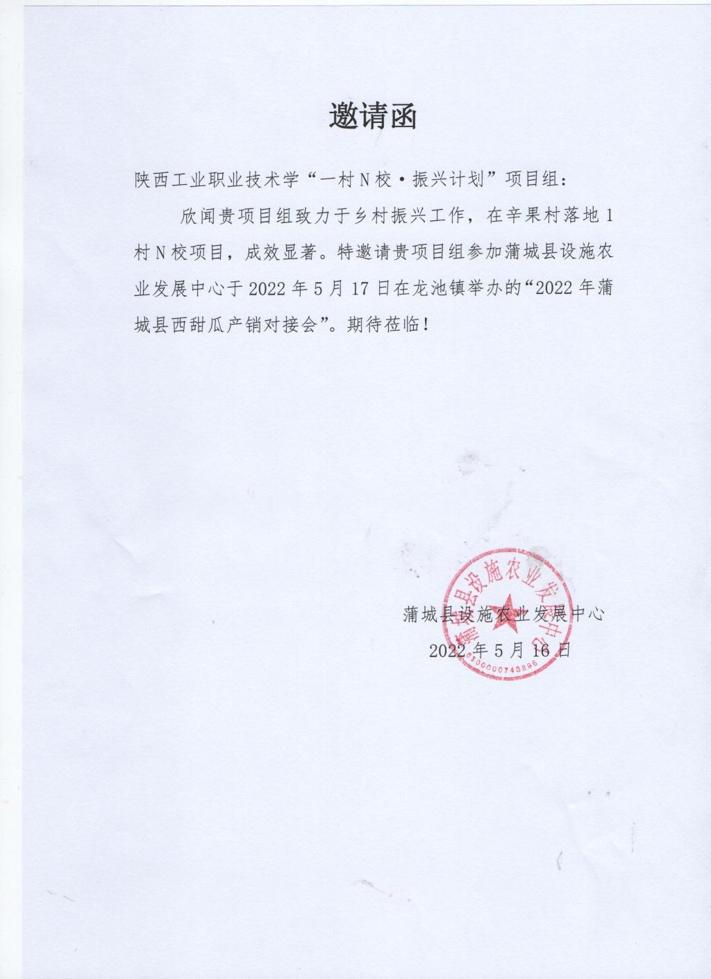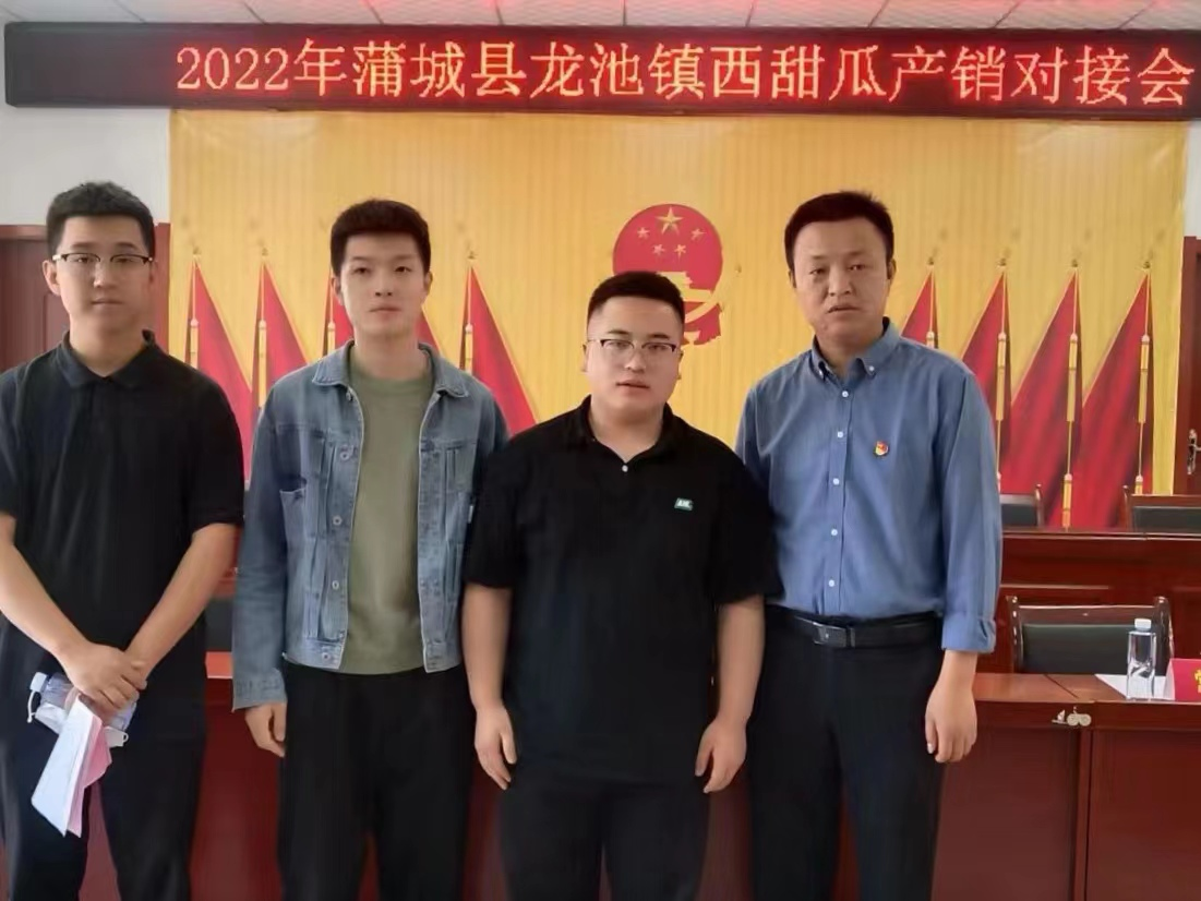 2022年蒲城县西甜瓜产销对接会于5月17日在蒲城县龙池镇召开,产销对接会由蒲城县设施农业发展中心举办。公司“一村N校·乡村振兴”员工创新创业团队作为全省唯一高职院校员工团队受邀参会。