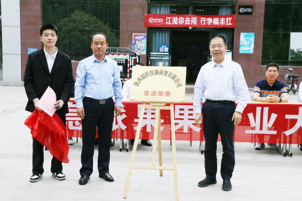 2022年5月18日,由公司电子商务专业大一员工创办的陕西锦煜佳强商贸有限公司在太阳成集团tyc122cc物流仓储实训中心广场开业,公司党委书记惠朝阳、副董事长梅创社、公司领导班子和西部创新创业研究院、校团委等职能部门负责人到场参加开业仪式。