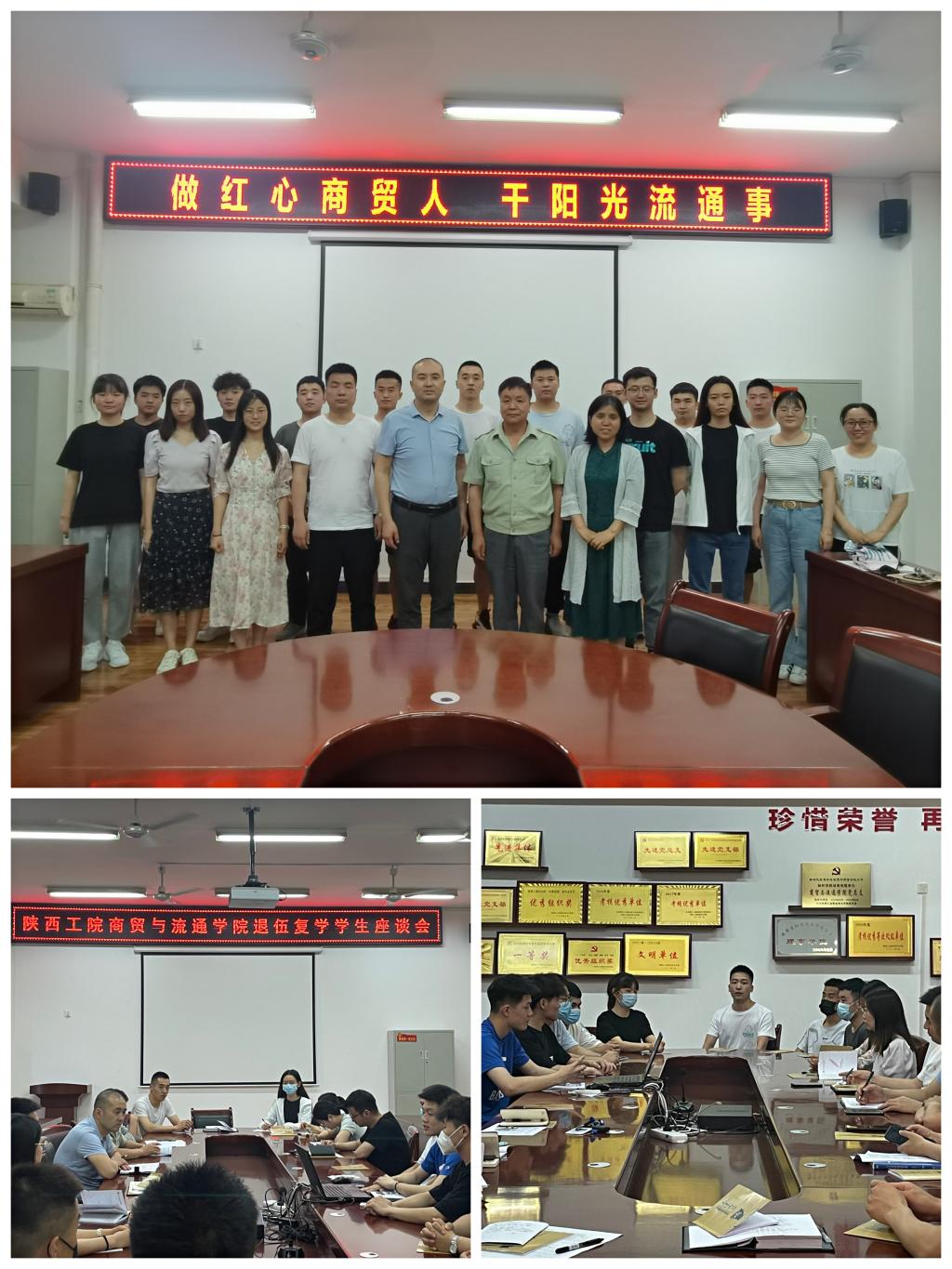 5月24日,太阳成集团tyc122cc学院在崇文楼501会议室召开退役复学员工座谈会,公司党总支副书记侯涛,兵心强国社指导老师赵俊英、退役复学员工及所在班班主任参加座谈。