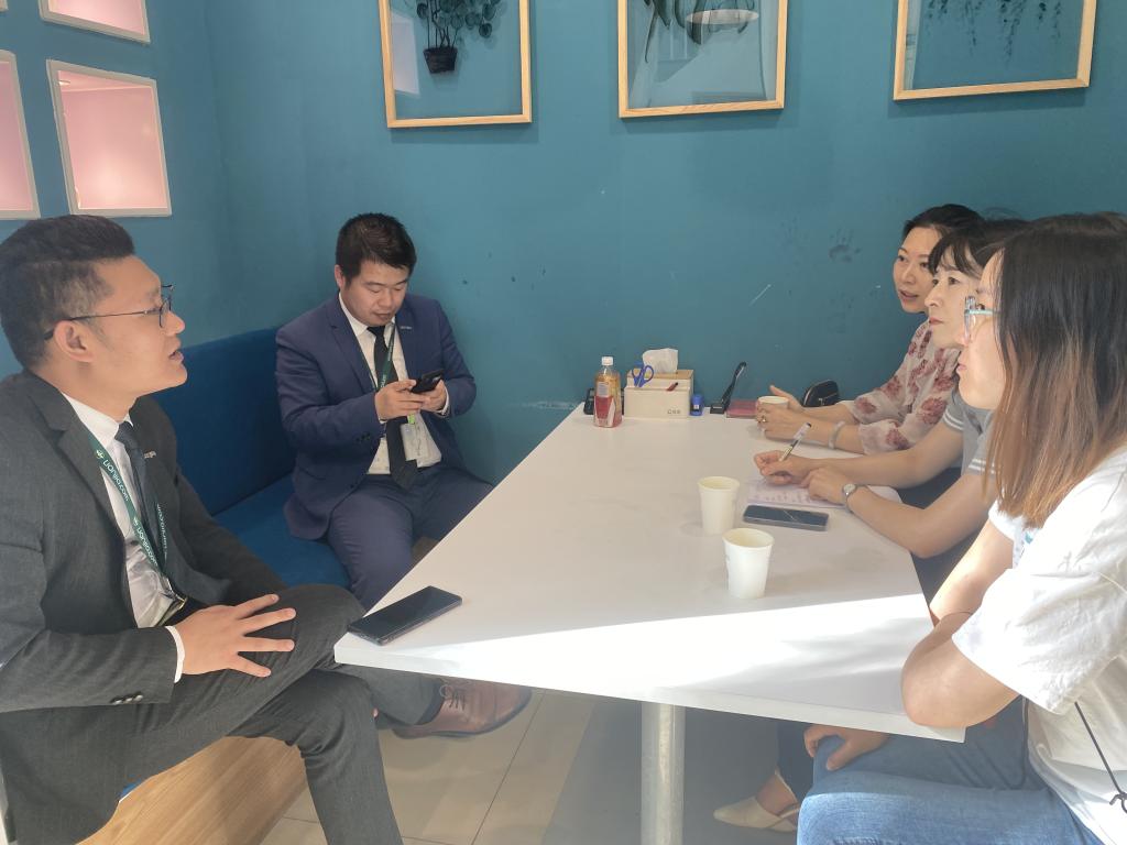 在徐东经理的陪同下,三位老师参观了企业办公场地,同企业员工进行现场座谈,了解学习了公司的经营理念及员工管理办法。