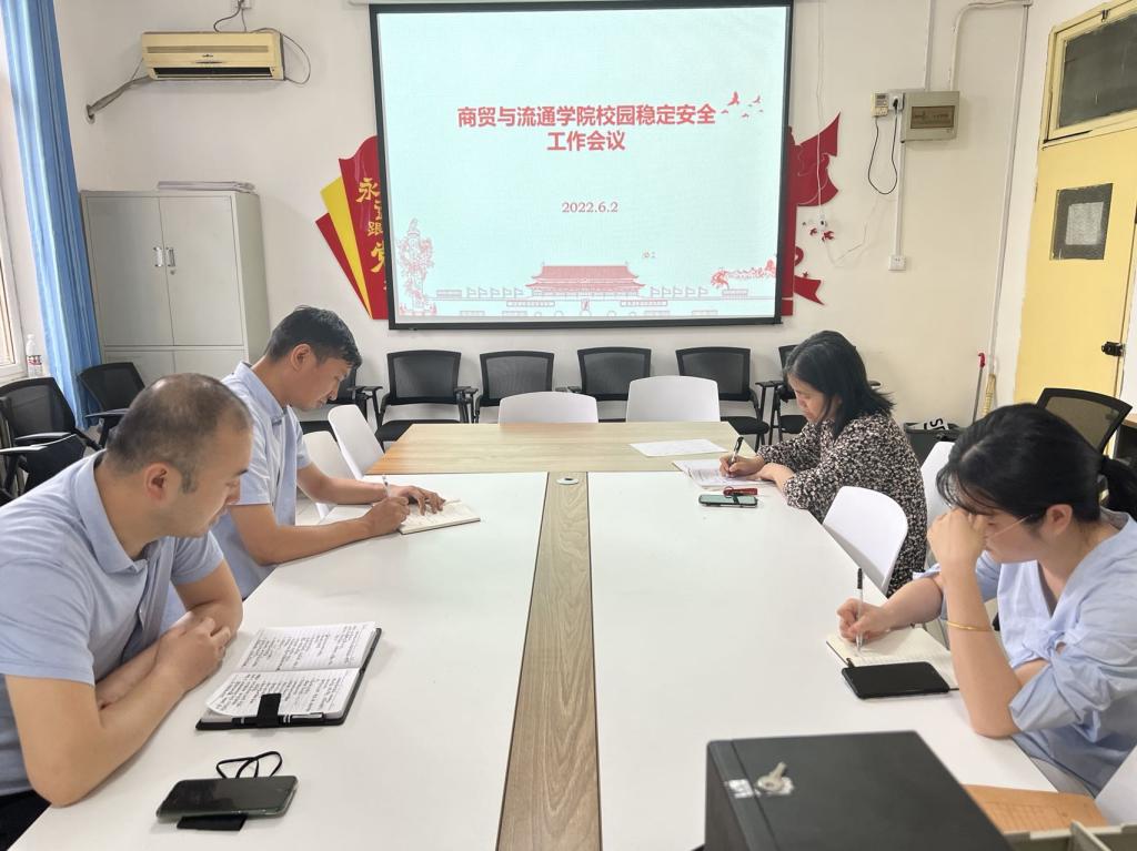 侯涛传达了学校稳定安全工作会议精神,强调安全稳定是学院事业发展的基石,应提高政治站位,增强安全稳定工作的敏锐性,前瞻性;在校企合作、顶岗实习、电商平台直播等各方面工作中筑牢稳定安全和意识形态工作防线;在常态化疫情防控时期,特别是时值端午假期,应做好对员工、教师“离校—返校”过程中的闭环管理,非必要不出省,出省前必须及时向防控办报备;加强对二级学院网站、微信公众号的监管力度,及时应对网络舆情。