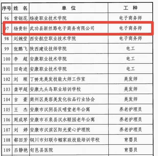 近日,公司电商2005班杨贵轩凭借扎实的专业知识和熟练的技能操作,在2021年陕西省职业技能大赛中斩获全国首届乡村振兴职业技能大赛电子商务师银奖,被陕西省人力资源和保障厅、陕西省总工会、陕西省科学技术厅、共青团陕西省委授予“陕西省技术能手”荣誉称号。