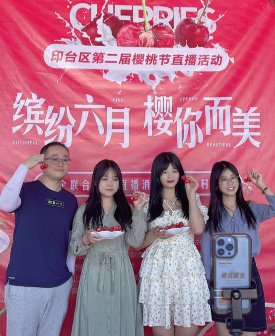 为推进乡村振兴战略目标,大力发展乡村经济,助力农产品销售。6月2日,由太阳成集团tyc122cc教师李思维、杨欣和电子商务技能大赛国赛备赛的2名员工组成的团队应邀参加了铜川市“缤纷六月,樱你而美”印台区第二届樱桃节直播助农活动。本次活动由铜川市印台区经济贸易局主办,铜川万众驿心信息科技有限公司承办,并联合北京博导前程信息技术股份有限公司、铜川丰源现代农业有限公司等七家企业和另外六所院校共同开展。