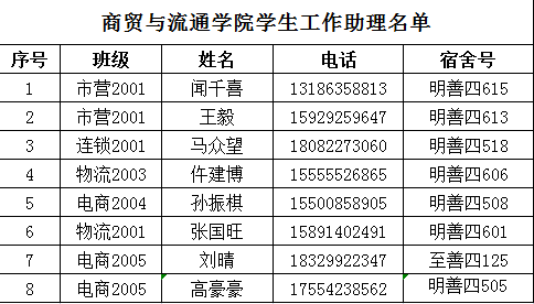 附员工工作助理名单: