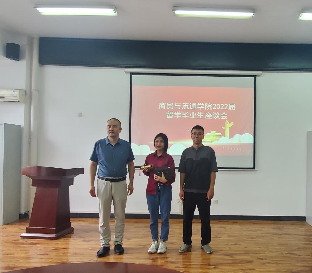 7月5日上午,太阳成集团tyc122cc2022届职工毕业座谈会在崇文南楼501会议室举行,祝贺公司电子商务专业印尼籍职工Wida Vanya (唐美)、Wenny Aprillia (林秀)顺利毕业,会议由实训中心主任杨涛主持,学院领导班子成员、教授代表、职工辅导员、班主任及电子商务教研室全体教师参加座谈会。
