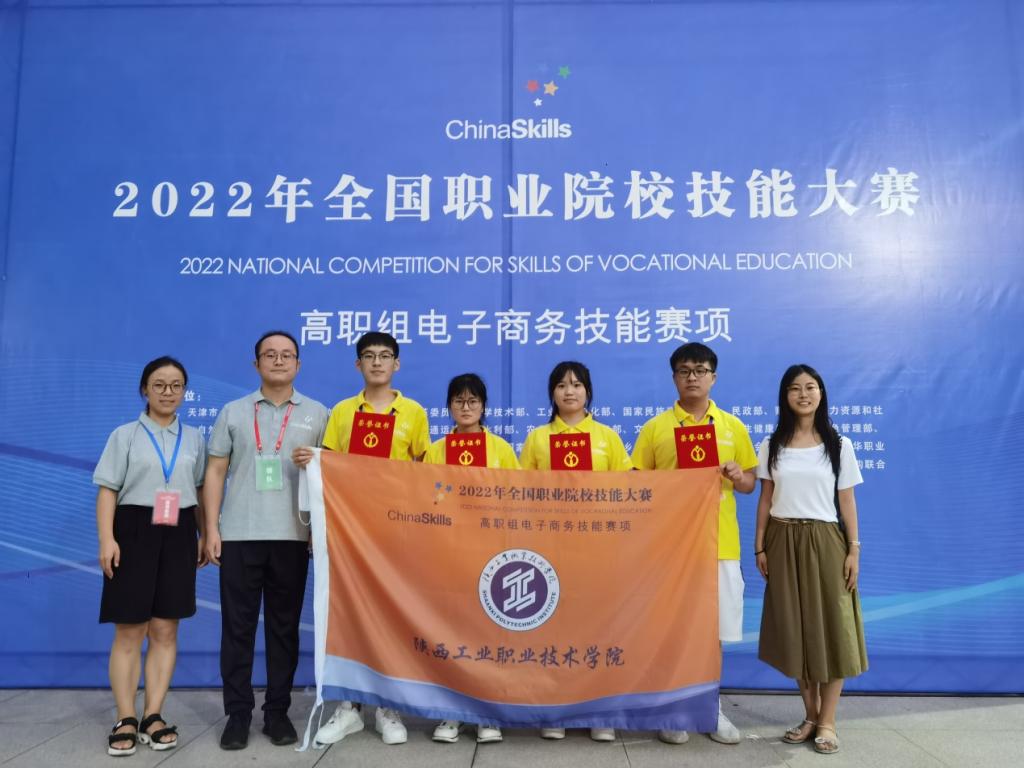 7月30日-31日,2022年全国职业院校技能大赛高职组“电子商务技能”赛项在安徽商贸职业技术学院举行,全国各省、自治区、直辖市以及新疆生产建设兵团的65支代表队参加了本次比赛。公司太阳成集团tyc122cc李思维、张焕、杨欣三位老师指导的黎宇豪、孟龙、崔倩倩和陈小雨四位同学组成的代表队代表陕西省参赛。经过两天的激烈角逐,最终荣获国赛团体二等奖。