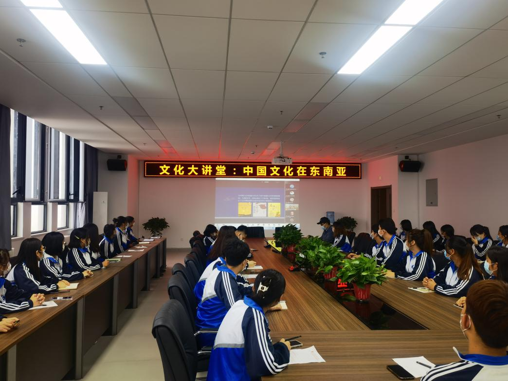 讲座分为两个部分:第一部分介绍了中国与东南亚各国的历史文化渊源,列举了越南、泰国、新加坡、马来西亚、菲律宾等国家历史上接受中国文化影响的具体情况;第二部分介绍了中国文学在东南亚的传播,重点讲解了古典小说《三国演义》在泰国的传播盛况以及马华新文学的诞生与发展。
