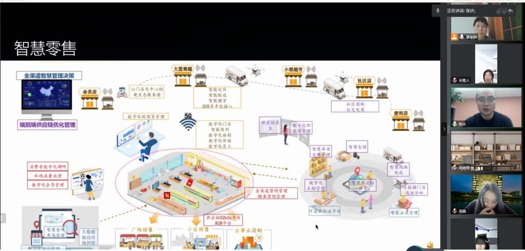 会上,张庆老师为连锁经营与管理专业同学们介绍了教研室各位老师,并从零售行业的发展变革开始,为同学们分享了传统零售行业、体验式新零售、智慧零售等三个方面内容,分析了零售行业的发展趋势,梳理了智慧零售对未来连锁经营与管理人才的岗位要求和发展空间。