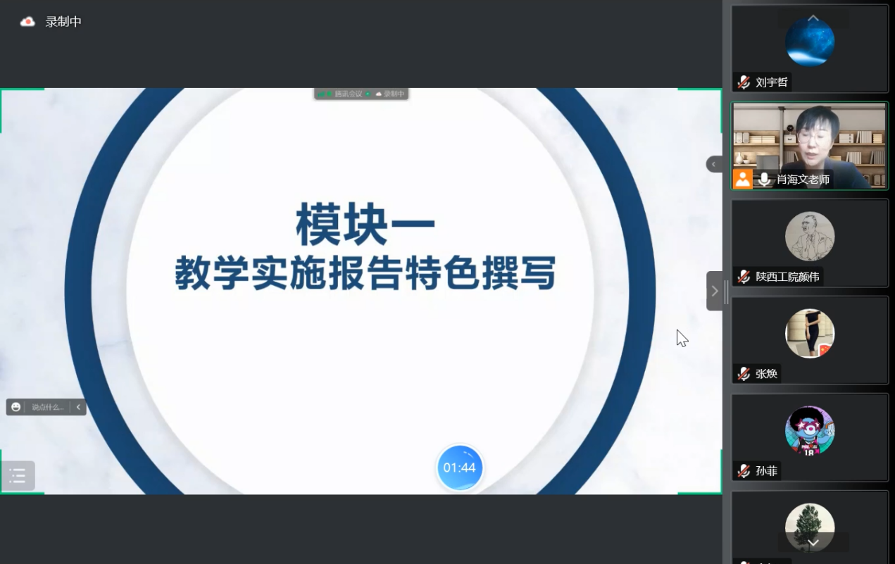 会后,副经理张光对肖海文教授的指导表示感谢,要求各教研室要认真思考专家建议,结合各专业课程实际,着眼2023年教师教学能力比赛,通过线上教研活动,开始对参赛作品进行初步构思,并在放假前完成组队。