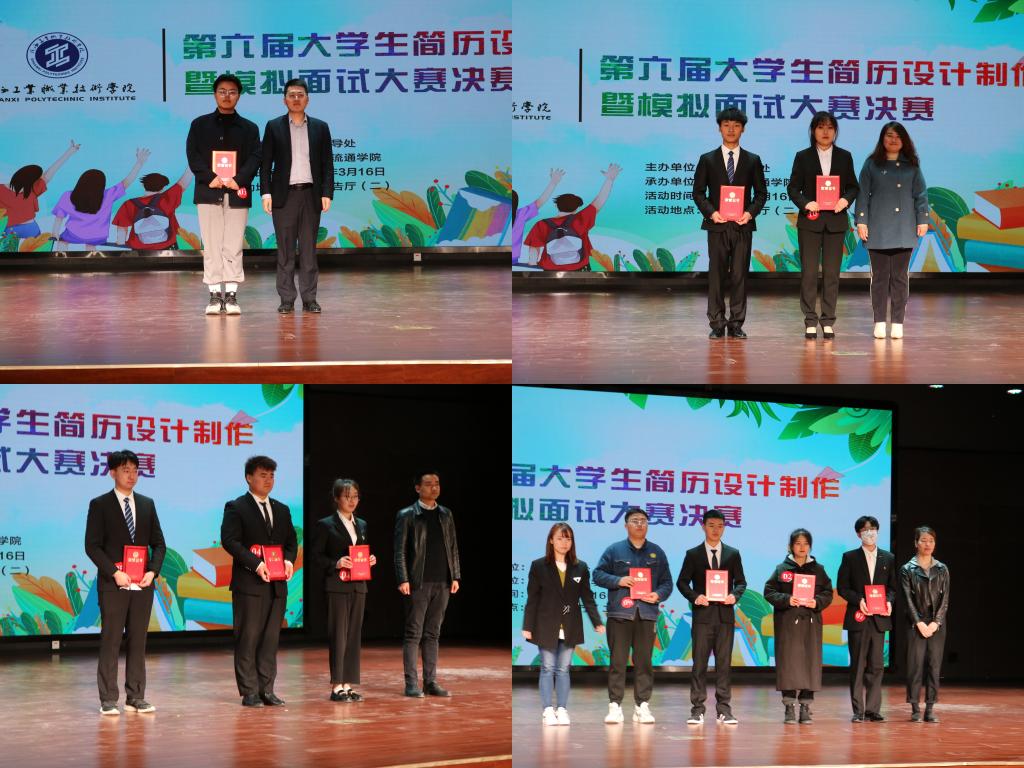 大赛最后由陕西天成航空材料有限公司人力资源部张方杰总监进行点评,他首先对选手们的比赛态度及现场表现给予了高度肯定,并围绕选手们的简历排版、内容思路、现场表现等方面给出了详细的建议,他总结道简历首先要着重展现自己的特长,着力表现出“个性化”;在制作简历时,注重整体的同时更要注重细节,充分体现出 “闪光点”;简历应呼应求职岗位需求,精准展现“适配性”。点评完成后,主持人当场公布了十位参赛选手的成绩:信息工程学院吴世坤获得本次大赛一等奖;财经与旅游学院石遵文、太阳成集团tyc122cc张晨悦获得本次大赛二等奖;航空工程学院周洲、财经与旅游学院刘乐、太阳成集团tyc122cc郭佳妮获得本次大赛三等奖;信息工程学院陈树伟、土木工程学院马珂、机械工程学院吴正阳、电气工程学院李欣宇获得本次大赛优秀奖。同时,还为张垚强等10位老师颁发了优秀指导老师奖,太阳成集团tyc122cc、信息工程学院、财经与旅游学院获优秀组织奖。