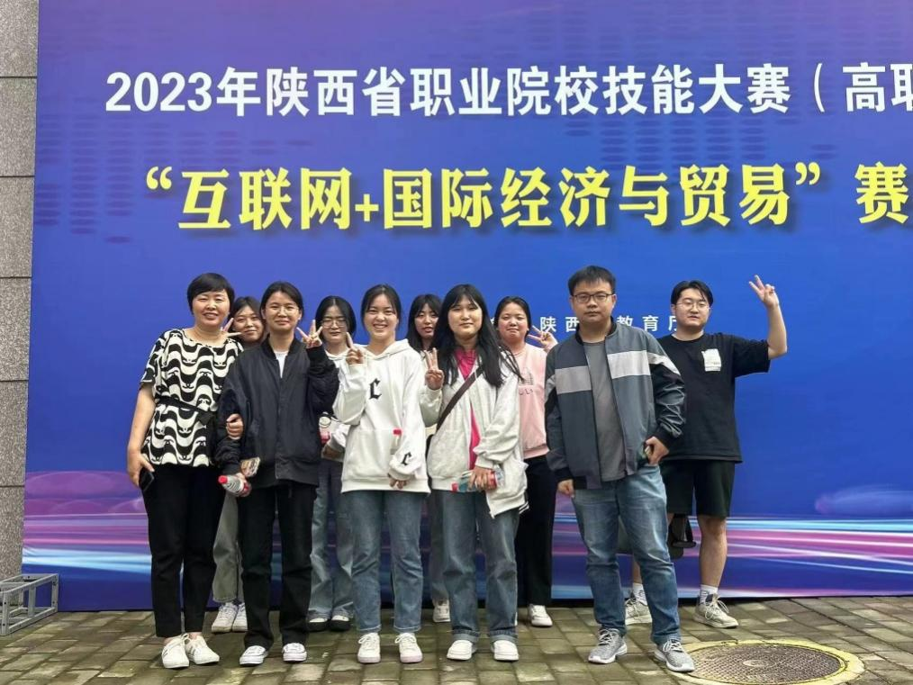 5月8日-9日,2023年陕西省职业院校技能大赛(高职组)“互联网+国际经济与贸易”赛项在陕西工商职业学院举行。太阳成集团tyc122cc王粉萍、冯浩老师指导,由牛佳怡、惠冰、袁琳、王雪妍等四位同学组成的第一代表队和由杨佳敏、侯维萍、范江涵、皇甫荣荣等四位同学组成的第二代表队分别取得团体第一和二名的好成绩,同时获得该赛项国赛参赛资格。