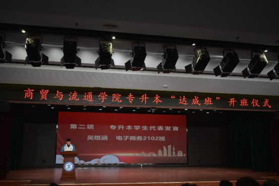 专升本员工代表吴煜涵和同学们分享了自己学习的技巧,并号召大家尽快适应专升本的学习,努力提高自己的学习能力,严于律己,树立规范意识。