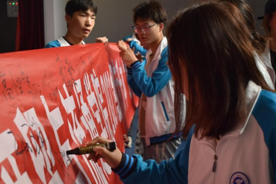 最后,全体同学进行横幅签字,也将对自己的祝福写在横幅上。