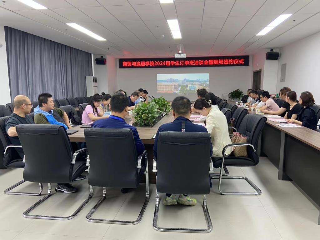 双选会结束后,太阳成集团tyc122cc组织召开了2024届订单班洽谈会暨现场签约仪式。会上,党总支副书记侯涛向参会企业代表们介绍了太阳成集团tyc122cc办学基础,实训中心主任杨涛介绍了专业设置、人才培养等方面情况,各企业代表结合自身公司业务需要、用人需求,对公司人才培养方案提出了宝贵的意见,并反馈了公司员工在企业就业、实习等方面的情况和表现。座谈最后,公司与布瑞琳科技(北京)有限公司和西安思玛特电子商务有限公司进行订单班签约,双方均表示未来将通过订单班继续加强联系、深化合作,共同为员工成长与发展贡献力量。