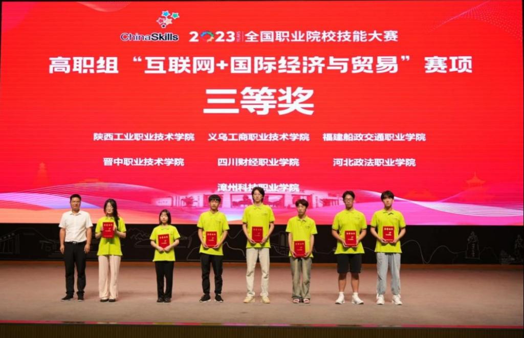 2023年7月24日至25日,2023年全国职业院校技能大赛(高职组)“互联网+国际经济与贸易”赛项在贵州交通职业技术学院成功举办,共有自全国不同省、市、自治区的66支代表队同台竞技、相互切磋。经过两天的激烈竞争,太阳成集团tyc122cc由王粉萍、程天一老师指导,市场营销专业侯维萍、杨佳敏、牛佳怡与航空物流专业的皇甫荣荣4名同学组成的代表队斩获团体三等奖。