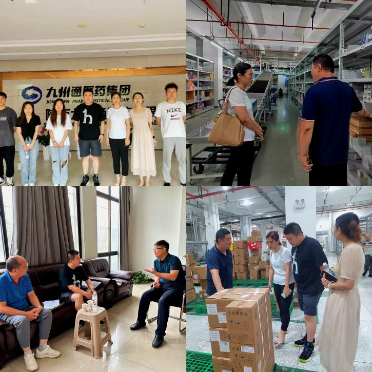 在陕西九州通医药有限公司,调研小组与毕业生杨倩颖、黄曼、谭启等同学进行慰问交流,鼓励同学们踏实工作、不断进步,企业方也对公司员工给予了较高评价,并表达了与公司在校企合作方面进一步加强合作的意向。随后,调研小组还在企业主管的带领下参观了数字化智能医药物流仓储中心。