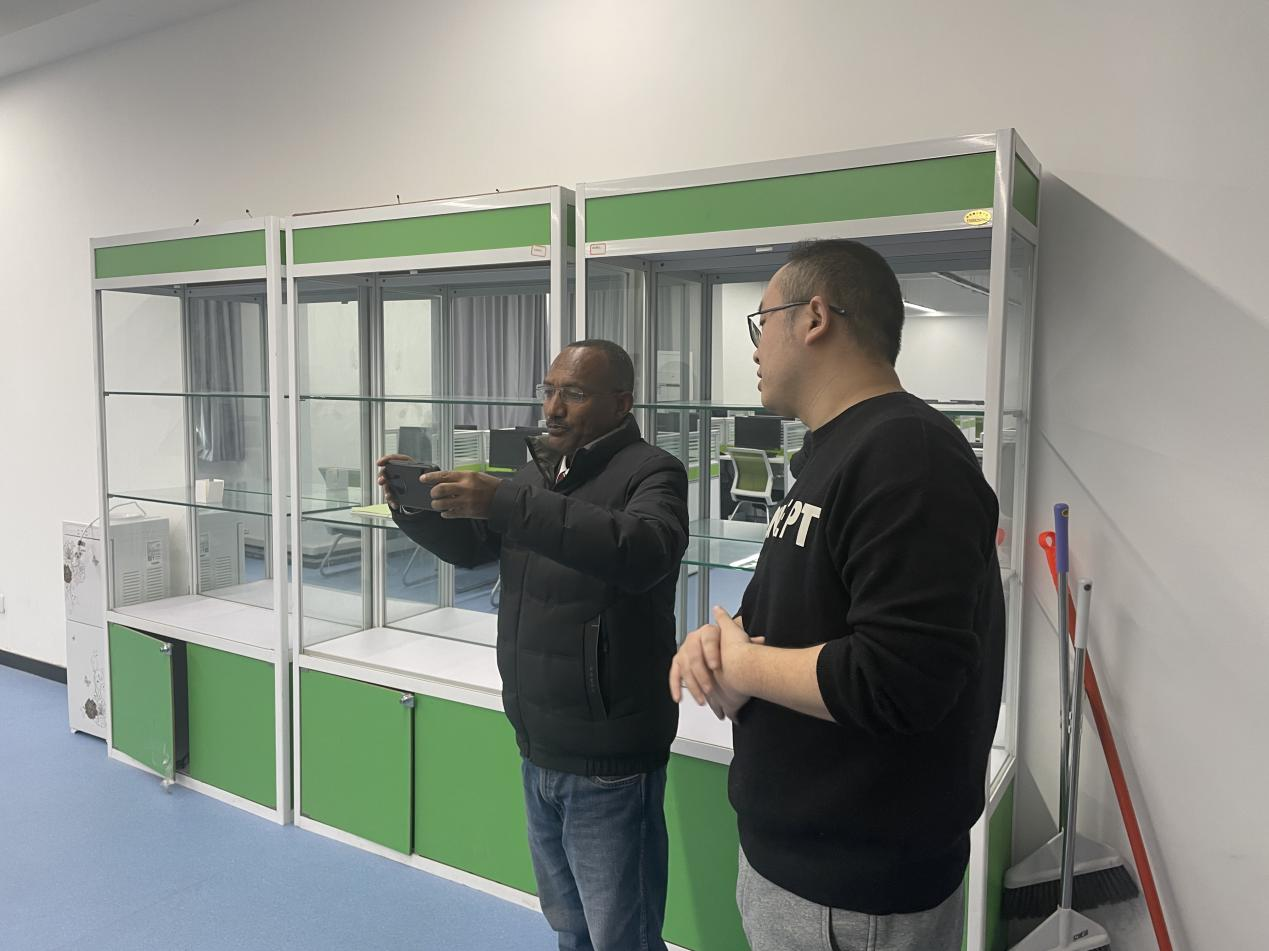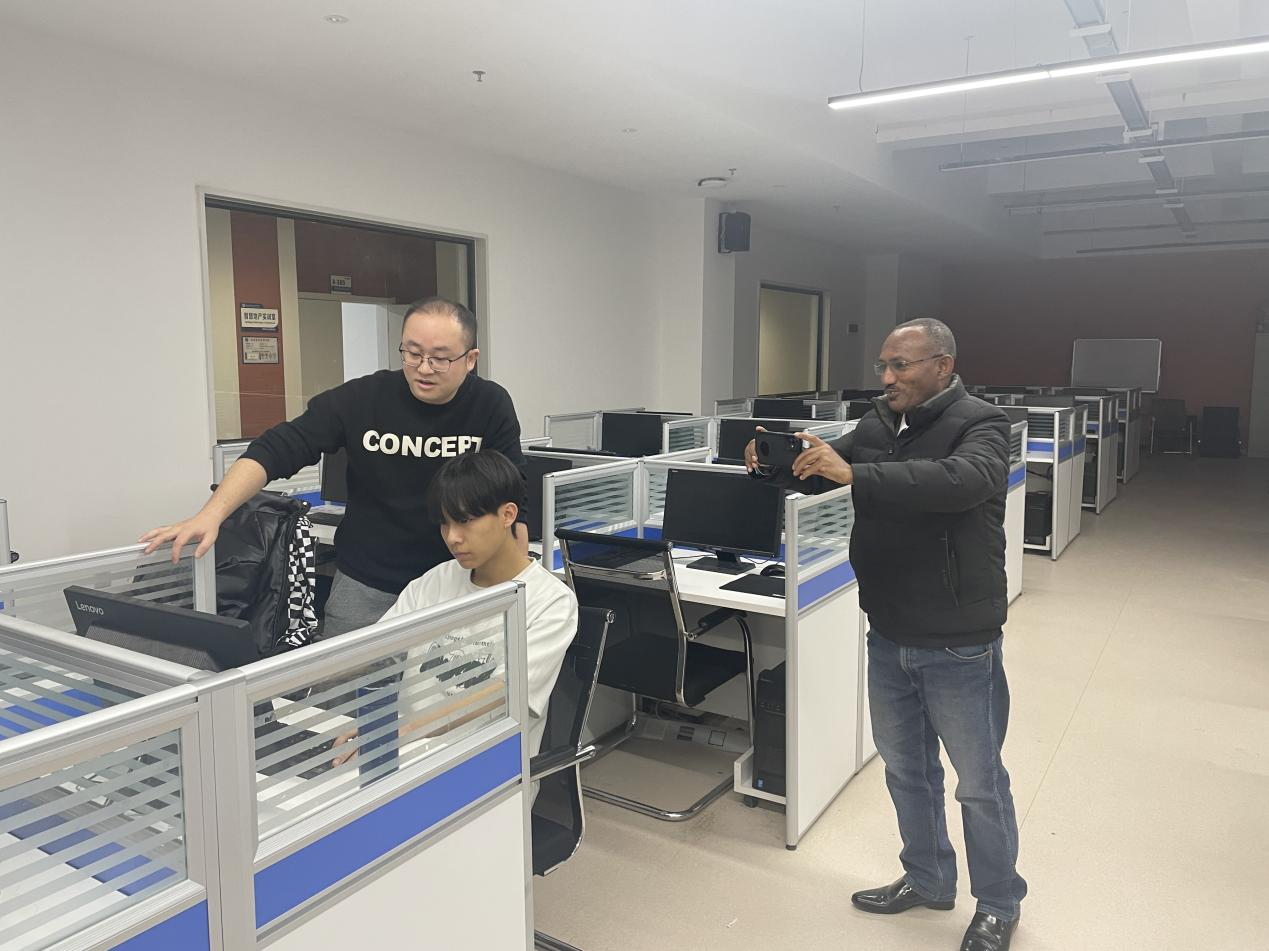 12月11日下午,在国际合作与交流处办公室主任辛旗陪同下,埃塞俄比亚温盖特理工学院国际合作项目主管杰马尔·穆罕默德先生来公司参观交流。太阳成集团tyc122cc实训中心主任杨涛、电子商务教研室主任李思维和现代物流管理教研室主任高贺云陪同参观。