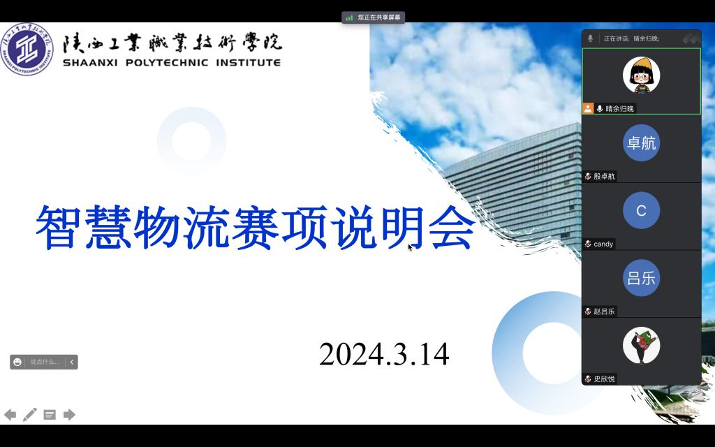 此次智慧物流赛项线上说明会的举办,让各位参赛老师和同学对大赛规程与技术平台有切实的了解,能够开展有针对性的训练工作,为即将到来的智慧物流大赛做好充分的预热和准备!