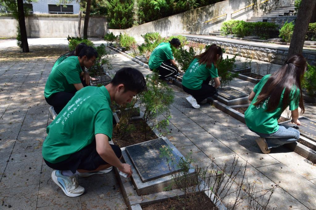 在英雄纪念墙前,实践团成员深情诵读了革命烈士许英的红色家书《为了全人类的自由解放,我情愿以死杀敌》,实践团成员为烈士们的英勇事迹和崇高精神所深深打动,团队成员多次潸然泪下。在烈士陵园的烈士墓区,团队成员向为革命战争献出宝贵生命的先烈们鞠躬默哀,并向烈士们敬献了寄托哀思的菊花,并清扫烈士碑上的污垢和尘土,擦除烈士碑上的污垢,以实际行动表达对革命先烈的敬仰和缅怀之情。