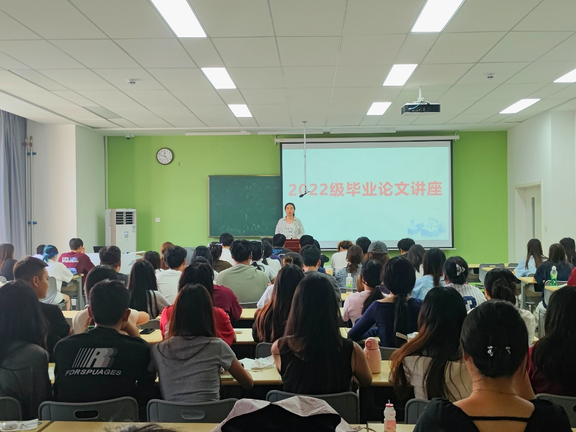 随后,李婷老师详细解读了毕业论文的要求。她从论文选题、文献综述、研究方法、数据分析、结果呈现以及结论撰写等多个方面进行了深入讲解。在选题方面,刘瑞老师提醒同学们要结合专业特点与实际应用,选择具有一定创新性和可行性的题目。对于文献综述,她强调了文献搜集的全面性与筛选的科学性,要能够梳理出前人研究的脉络与不足。